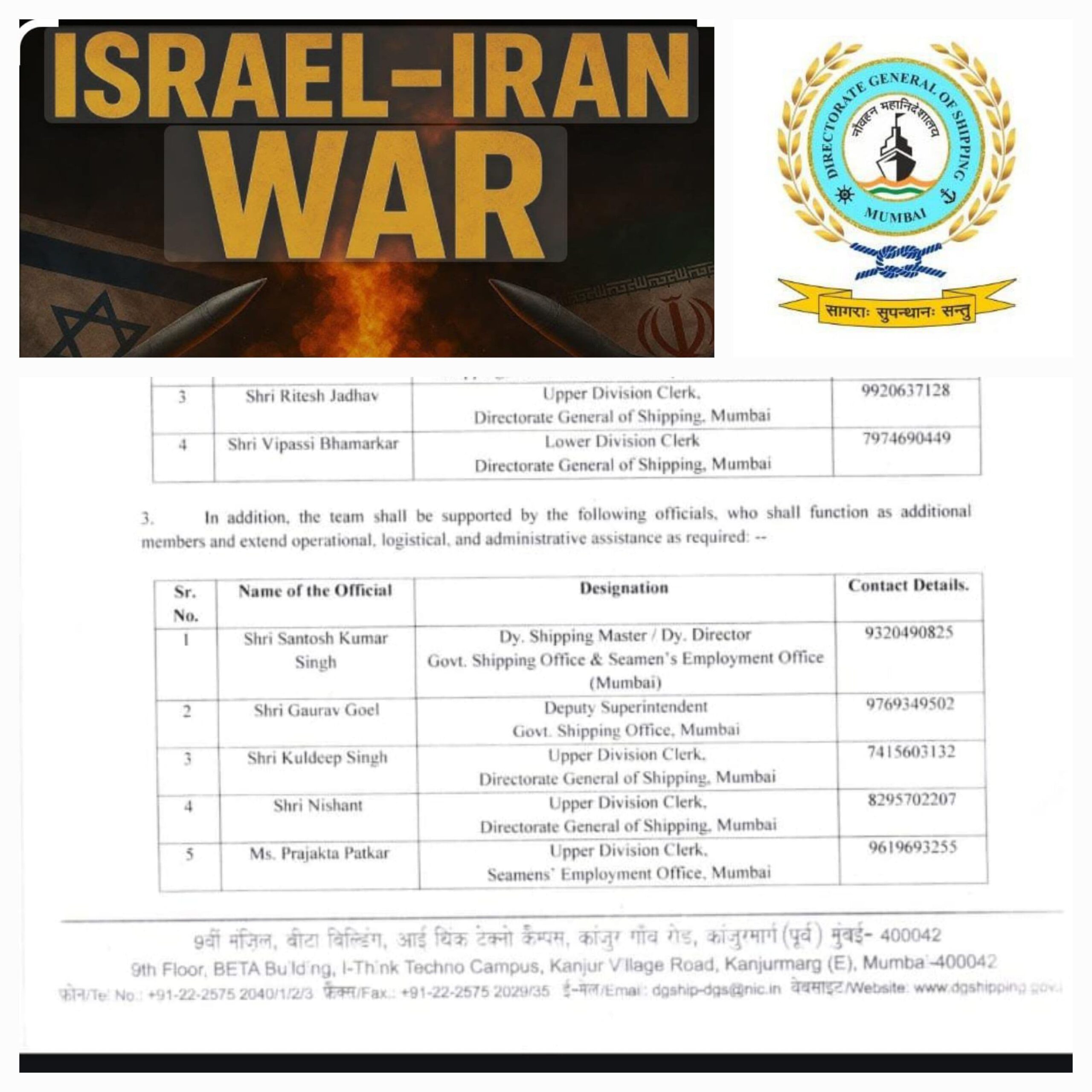 Amid the escalating conflict between Iran and Israel, the Government of India has taken a major step to ensure the safety and evacuation of Indian seafarers stranded in the region. The Directorate General of Shipping (DG Shipping) has announced the formation of a special “QUICK RESPONSE TEAM” to manage emergency coordination, assistance, and rescue operations.